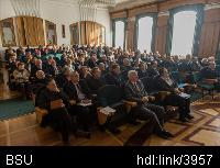 | Описание изображения: | Почетными грамотами Высшей аттестационной комиссии Республики Беларусь награждены сотрудники БГУ. В их числе: декан юридического факультета Сергей Балашенко, декан географического факультета Николай Клебанович и директор Государственного института управления и социальных технологий БГУ Петр Бригадин. Данные награды присуждены за многолетнюю работу по подготовке и аттестации научных и научно-педагогических кадров высшей квалификации. Вручение грамот состоялось 26 февраля в рамках заседания Совета БГУ. |