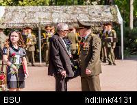 | Описание изображения: | Торжественное мероприятие, посвященное празднованию Дня Победы, прошло 7 мая в БГУ. Героями акции стали ветераны Великой Отечественной войны, ранее работавшие в университете. Со словами благодарности и поздравлениями с 73-й годовщиной Победы советского народа над немецко-фашистскими захватчиками выступил ректор БГУ Андрей Король. В этот день внутренний дворик вуза был оформлен в стиле военных лет. Маскировочная сетка, брезентовая палатка, мотоцикл-МТ и боевая машина пехоты создали атмосферу того времени. Импровизированной сценой стал кузов легендарной «полуторки», с которой еще более 70 лет назад выступали артисты передвижных театров и концертных бригад. Тогда своими представлениями актеры и музыканты поднимали боевой дух солдат. В программу торжества вошла музыкально-поэтическая постановка «Чтобы помнили…», посвященная Хатынской трагедии. Прозвучали музыкальные композиции в исполнении Народной хоровой капеллы и вокальной студии БГУ. Аккомпанировал духовой оркестр Минского городского управления МЧС. Кроме того, студенты БГУ выступили с поэтическими и прозаическими произведениями о кровавых событиях 40-х лет. В рамках мероприятия также состоялся торжественный марш курсантов военного факультета БГУ и возложение цветов к мемориальному знаку в память студентам и преподавателям БГУ, погибшим во время ВОВ. Завершилась акция угощением участников настоящей солдатской кашей. Организаторами мероприятия выступили управление по делам культуры БГУ и Первичная профсоюзная организация работников БГУ. Справка. До войны в структуру БГУ входили 6 факультетов и 33 кафедры. Тогда в вузе насчитывалось 1400 студентов, 151 научный работник, 210 человек административно-технического персонала и 90 учебно-вспомогательного. Таким образом, общее количество составило 1851 человек. Только в первые дни войны около 450 студентов и преподавателей добровольцами ушли на фронт. Эвакуироваться успели только 620 человек. В городе остались преподаватели и студенты, большинство из которых стали активными участниками подпольного и партизанского движения. Из числа студентов и сотрудников БГУ – участников событий тех лет, 12 присвоено звание Героев Советского Союза. Сегодня в вузе осталось 18 ветеранов Великой Отечественной войны. |