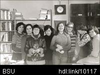 | Описание изображения: | На фото Зрубович Л.И., Эрн (Тыртышная) Н.И., Клевцова Е.И., Шеремет Л.М. с сотрудниками отдела |