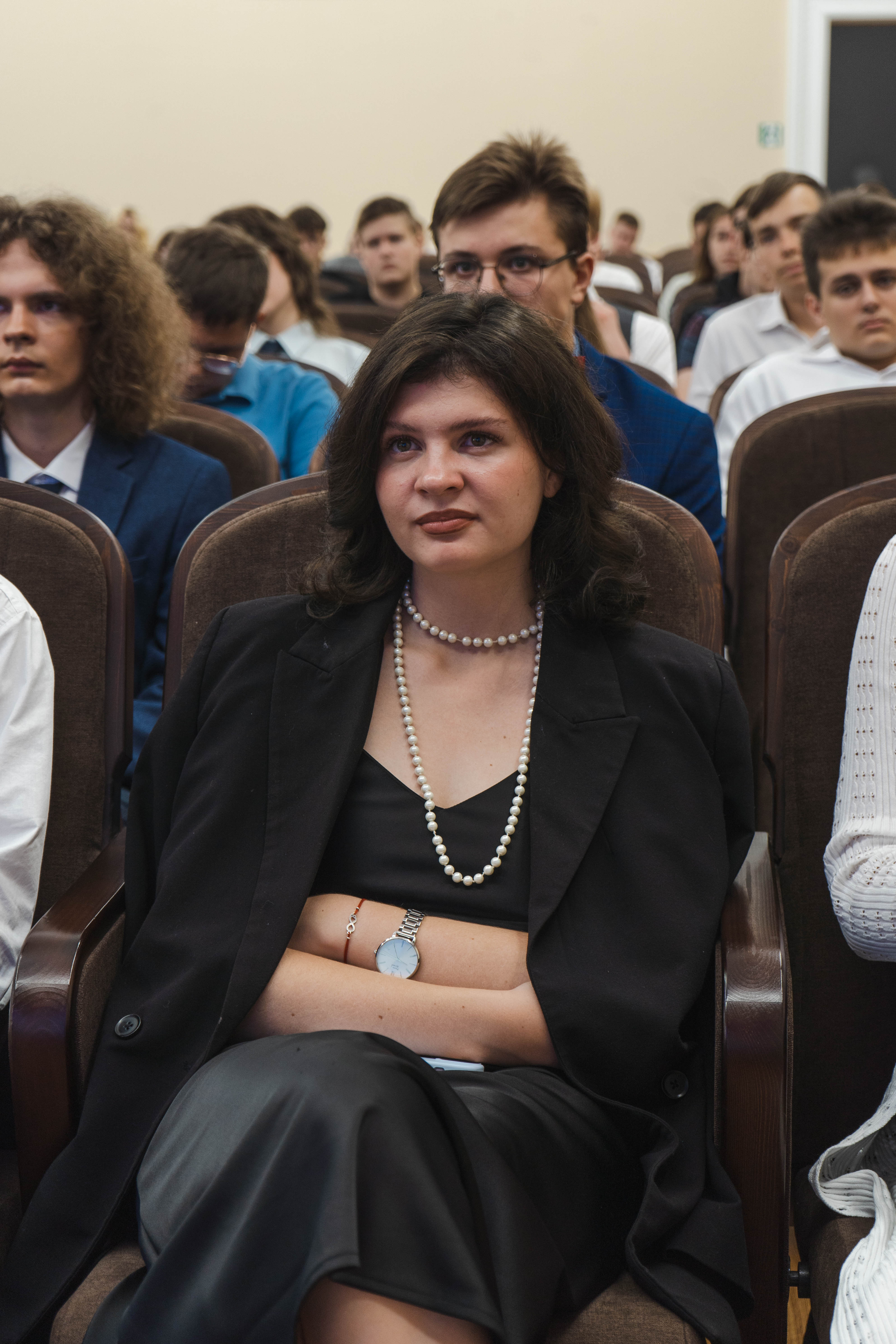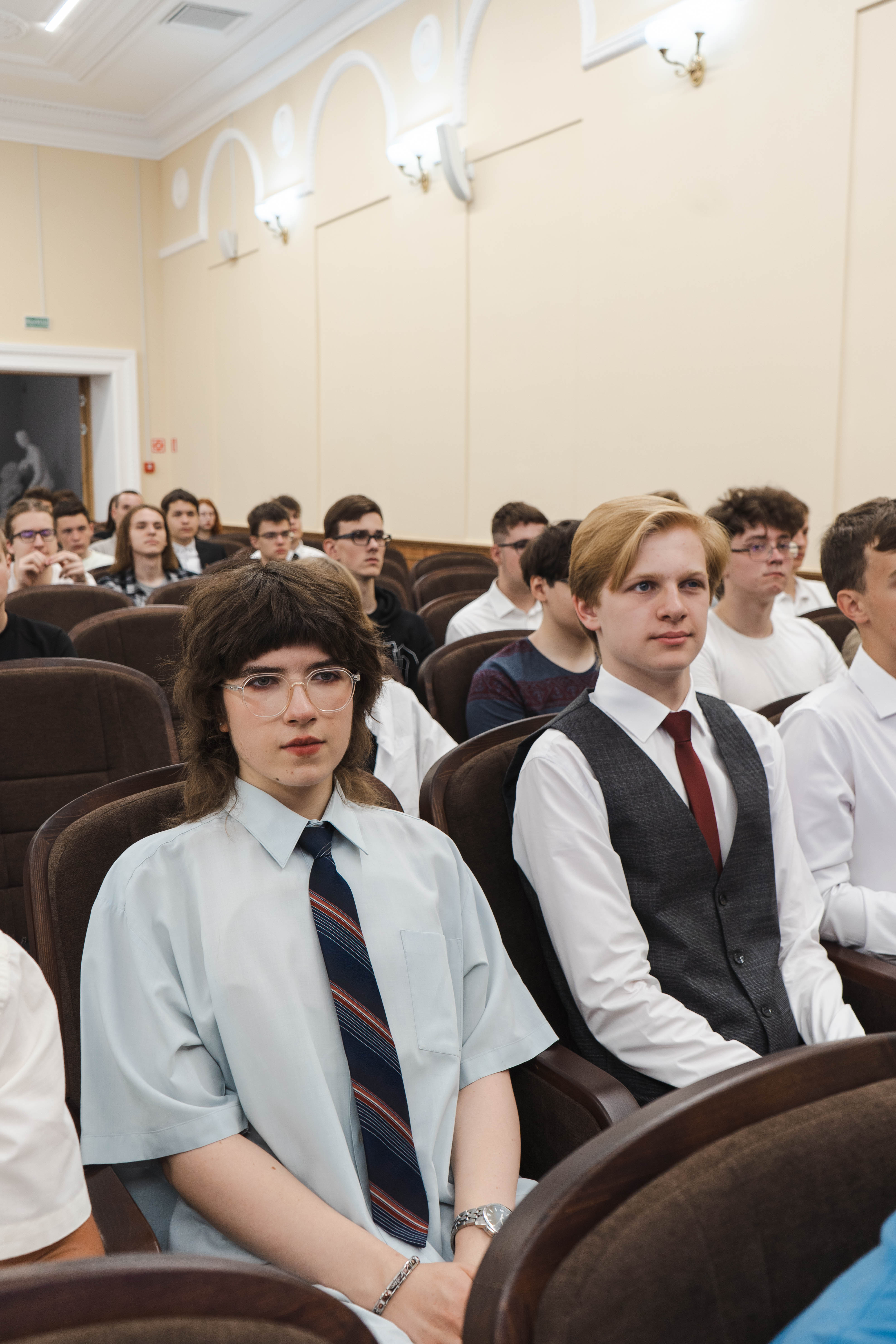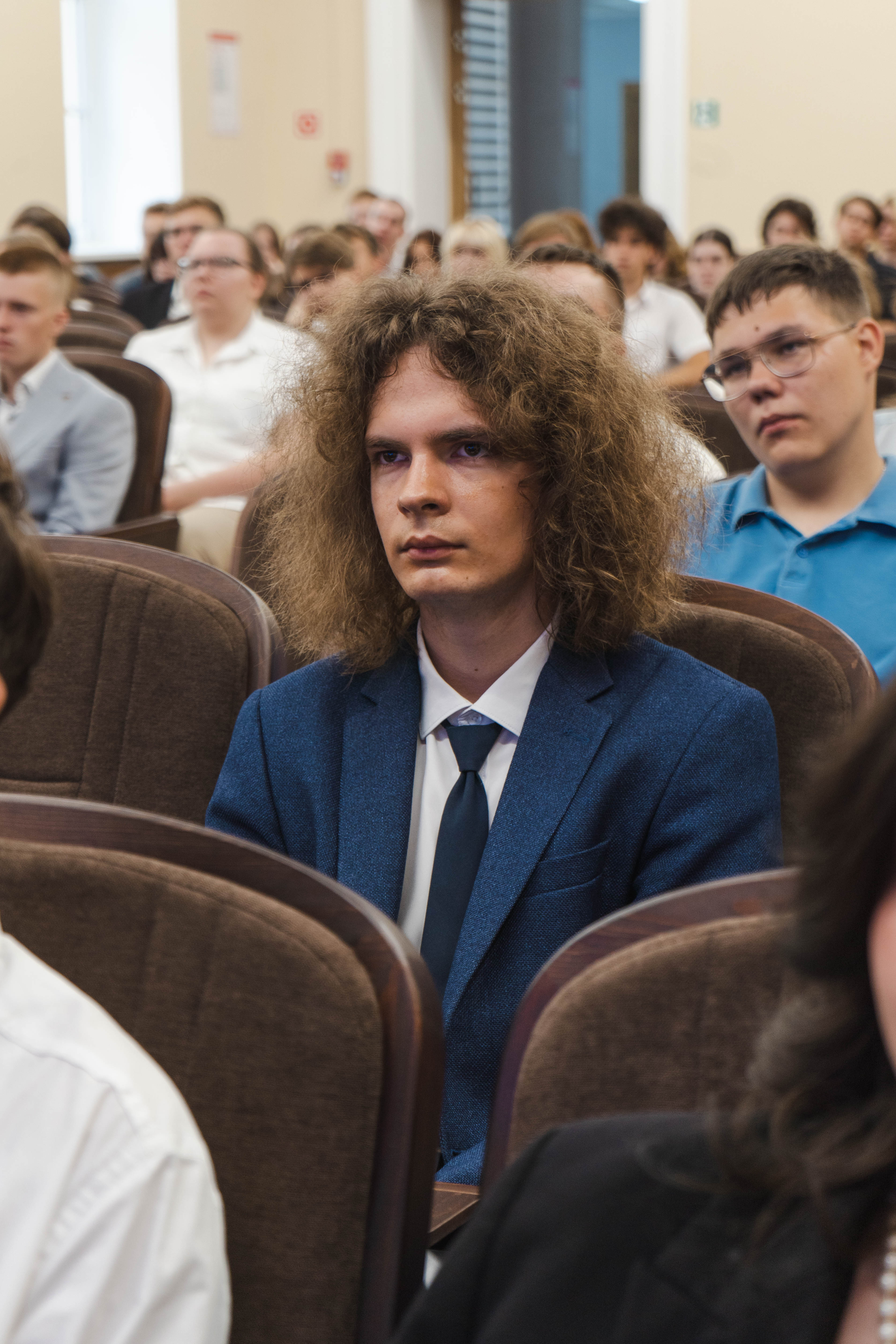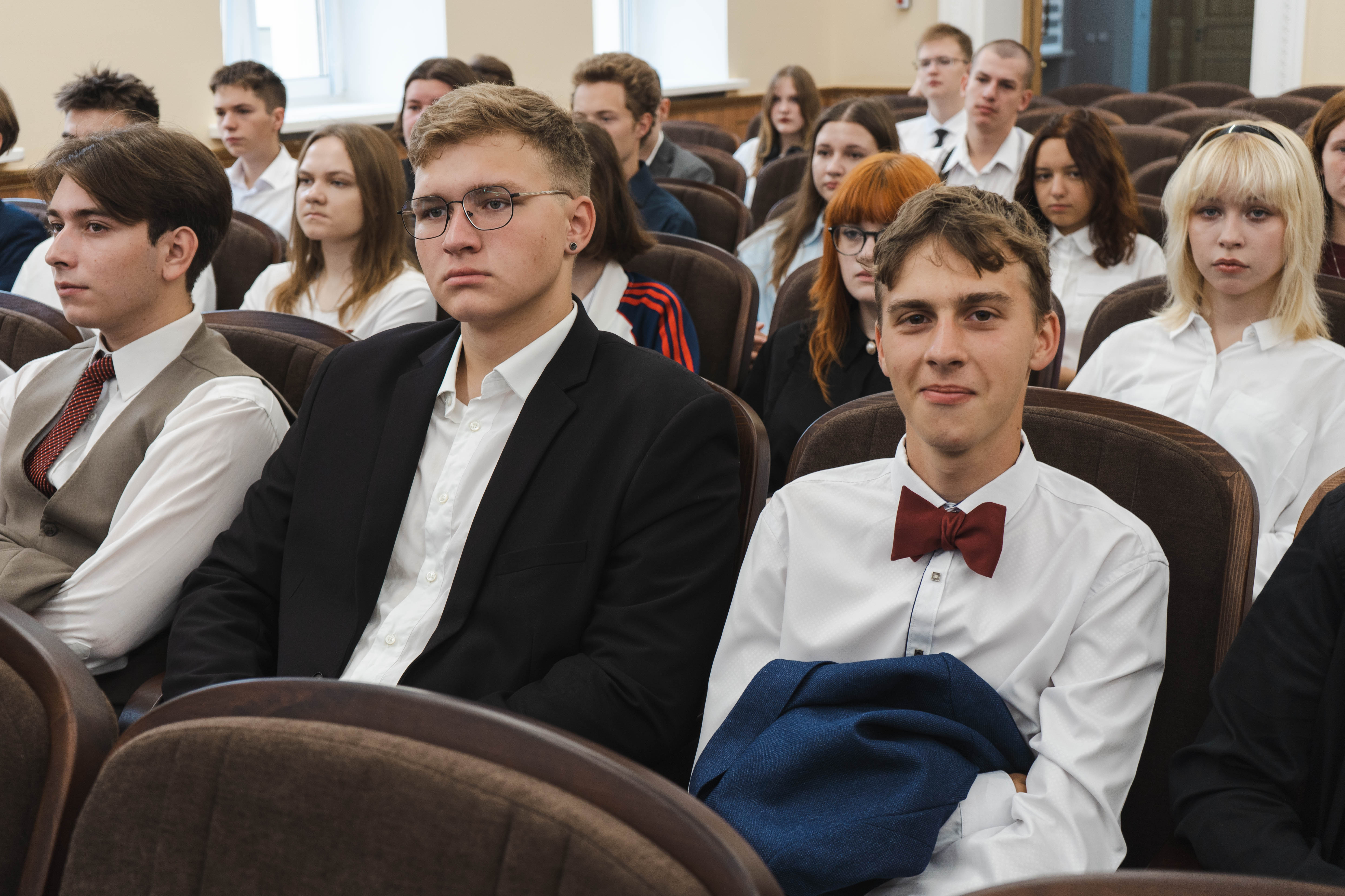 Описание изображения: Первый день нового учебного года стартовал встречей декана исторического факультета БГУ Александра Кохановского с первокурсниками. На информационном часе «Эстафета поколений: сохраняя прошлое, создаем будущее» декан поздравил всех с Днём знаний, рассказал о достижениях Беларуси за последние годы и роли БГУ в развитии нашей страны. Из уст декана первокурсники узнали, в чем уникальность БГУ, о достижениях университета, его истории, малоизвестных фактах за более чем столетний период развития alma matter. — Все, что мне дорого, что я ценю и люблю — в основе всего наш Университет. Призываю и вас ценить и любить alma matter,— резюмировал свое выступление декан. Далее эстафету подхватила заместитель декана по идеологической и воспитательной работе Алина Веремейчик. Она поделилась с первокурсниками информацией о возможностях, которые предоставляет сегодня университет каждому студенту, познакомила с активом студенческих организаций.