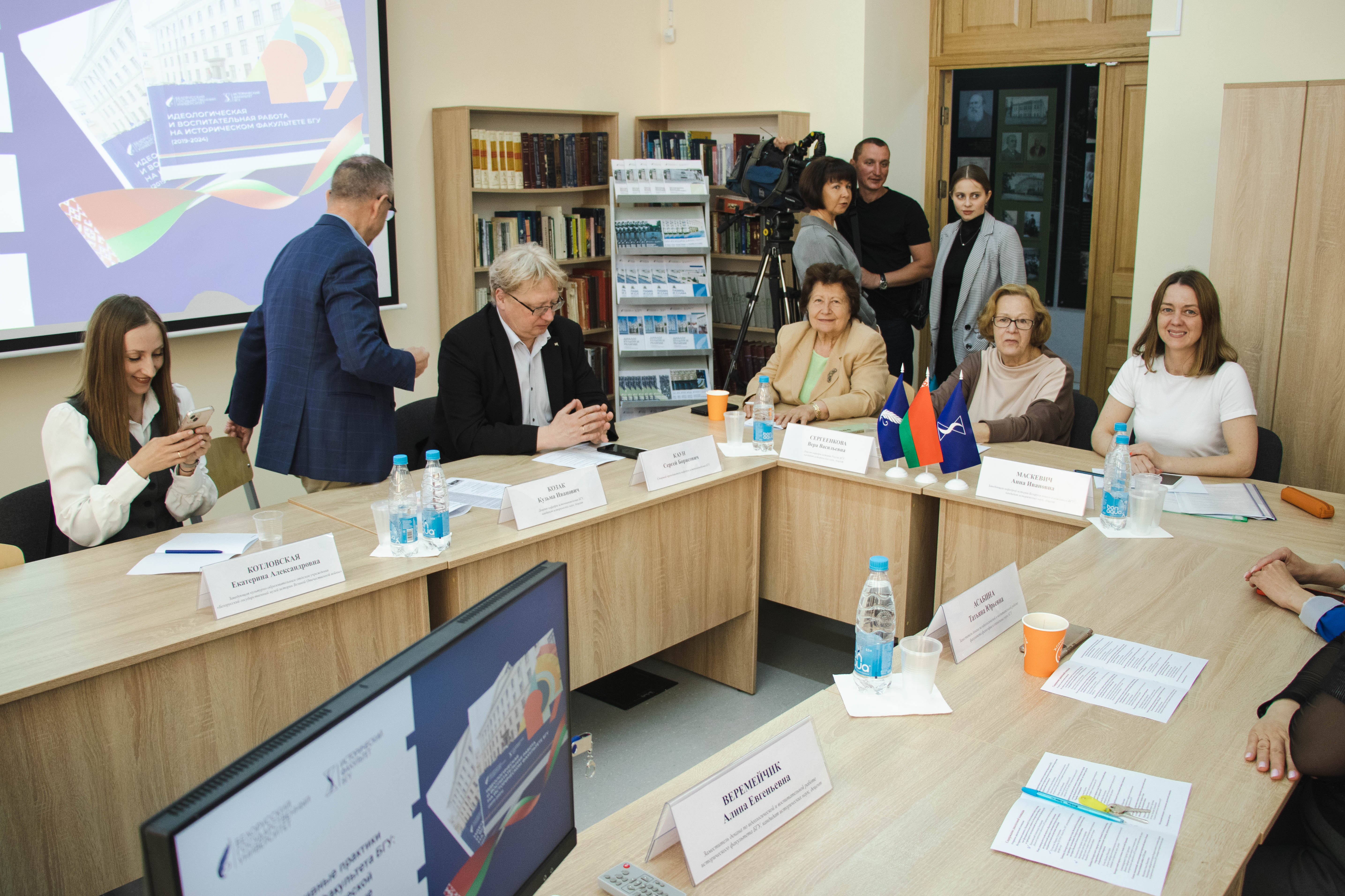 Описание изображения: | Диалоговая площадка «Память через поколения», посвящённая осмыслению трагедии геноцида белорусского народа в годы Великой Отечественной войны состоялась 19 июня на историческом факультете. В центре внимания – историческая правда, преемственность поколений и роль молодёжи в сохранении памяти. Открывая встречу, декан исторического факультета Александр Кохановский отметил, что диалоговые площадки по проблеме геноцида белорусского народа крайне важны, особенно эта тема актуальна для молодых исследователей. С деканом согласилась Марина Гутовская, председатель ПО РОО «Белая Русь» БГУ. В рамках мероприятия обсуждались новые архивные данные и исследовательские подходы, отражение памяти в образовании, музее, искусстве, вклад студенческих инициатив в сохранение исторической истины. |