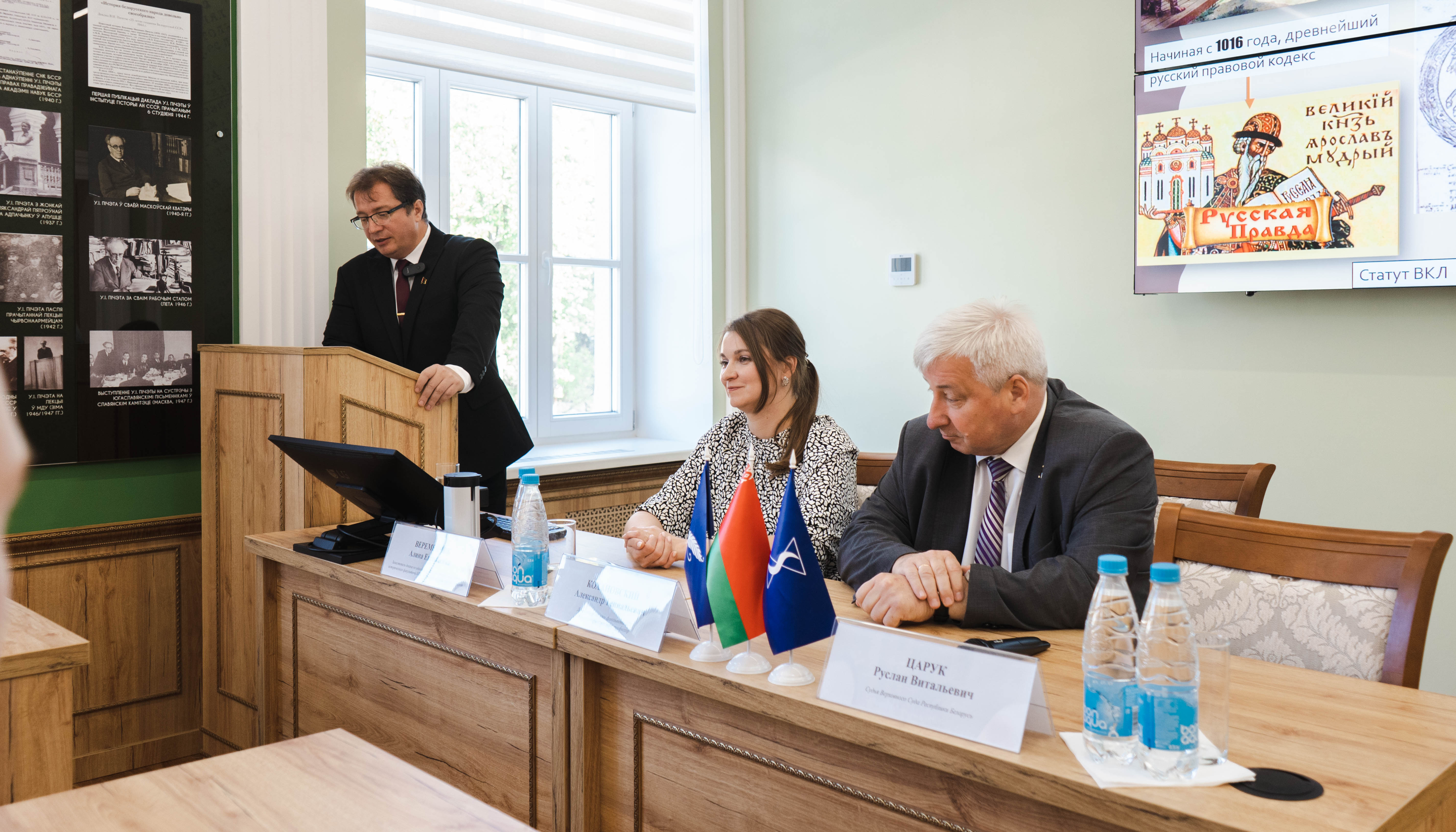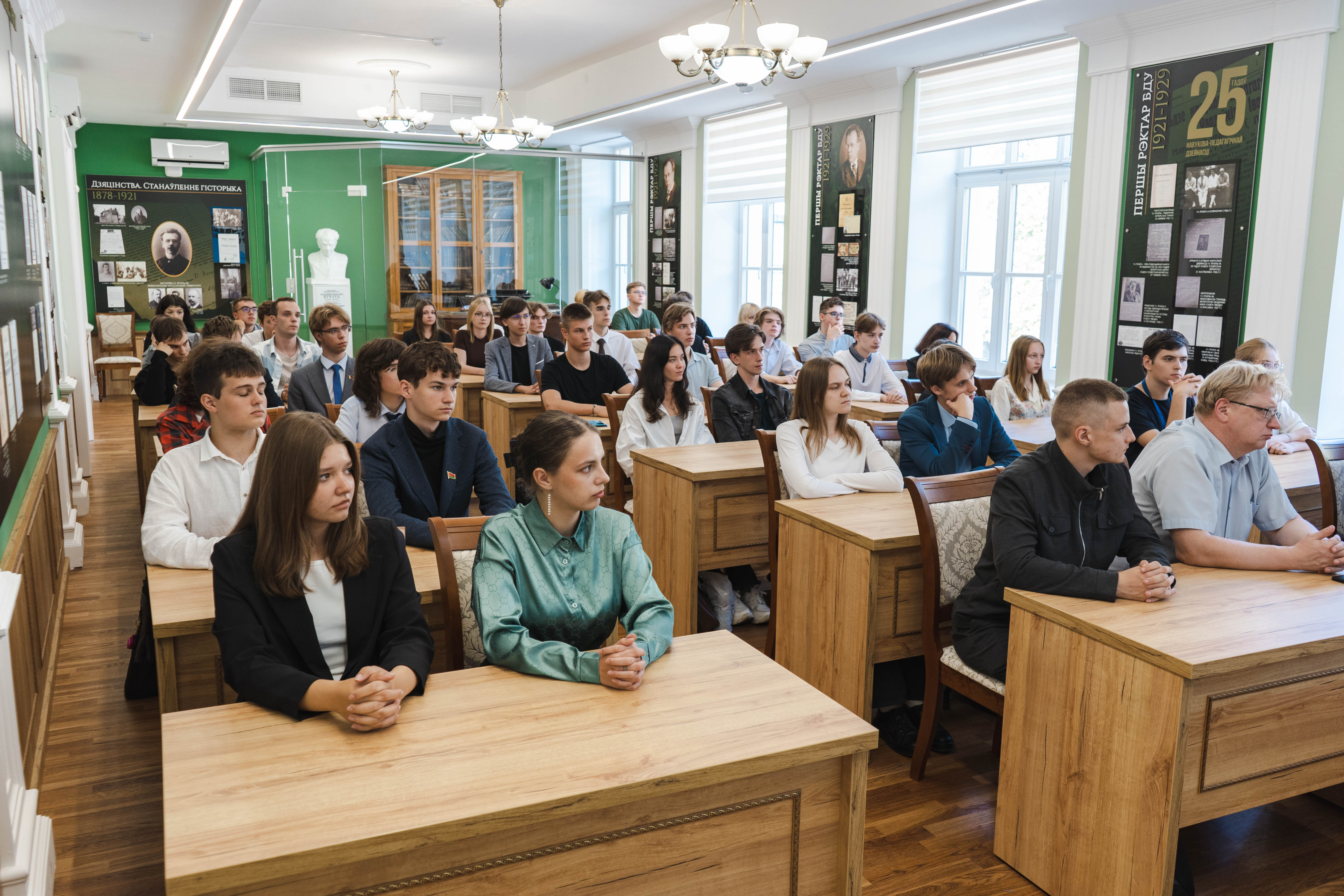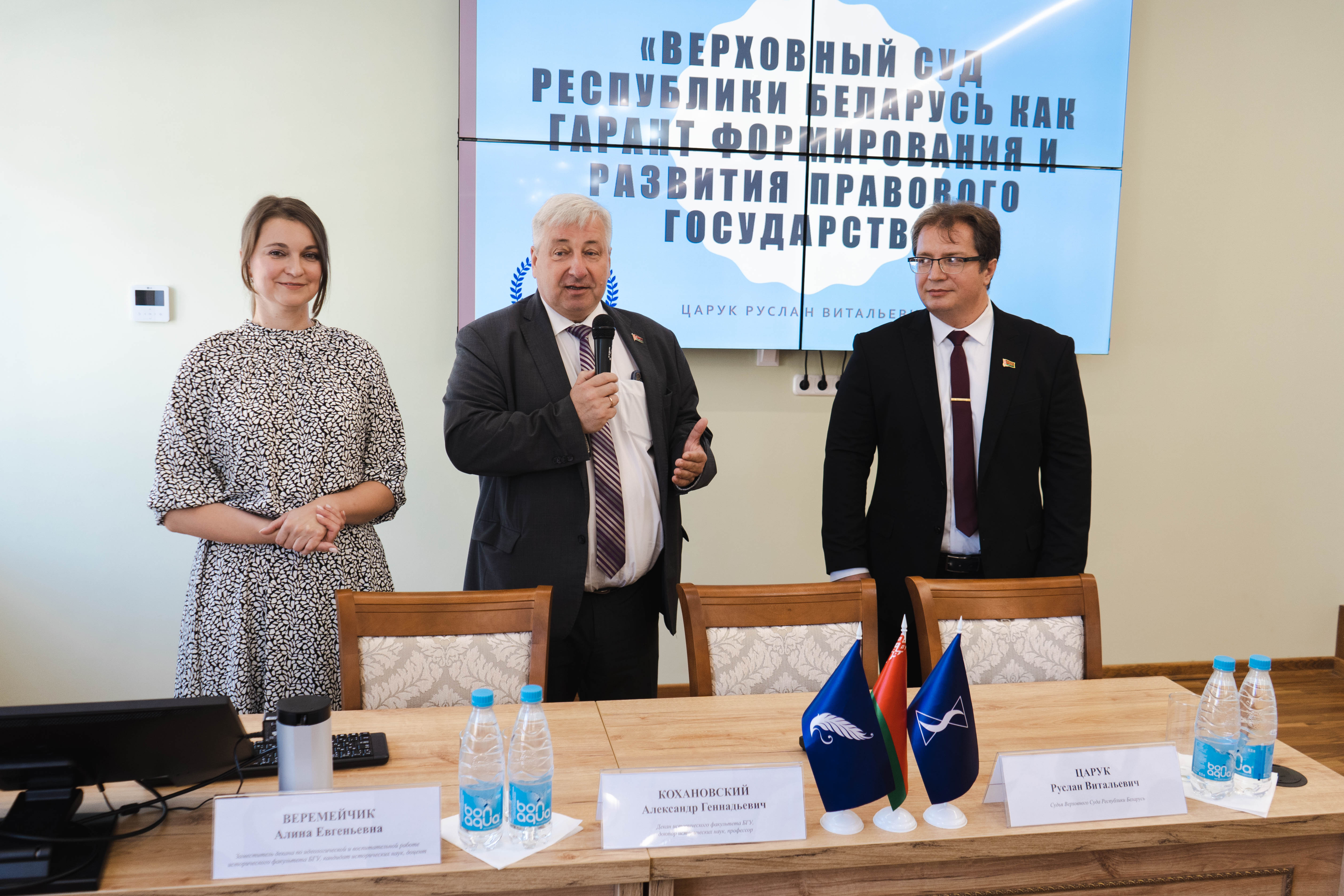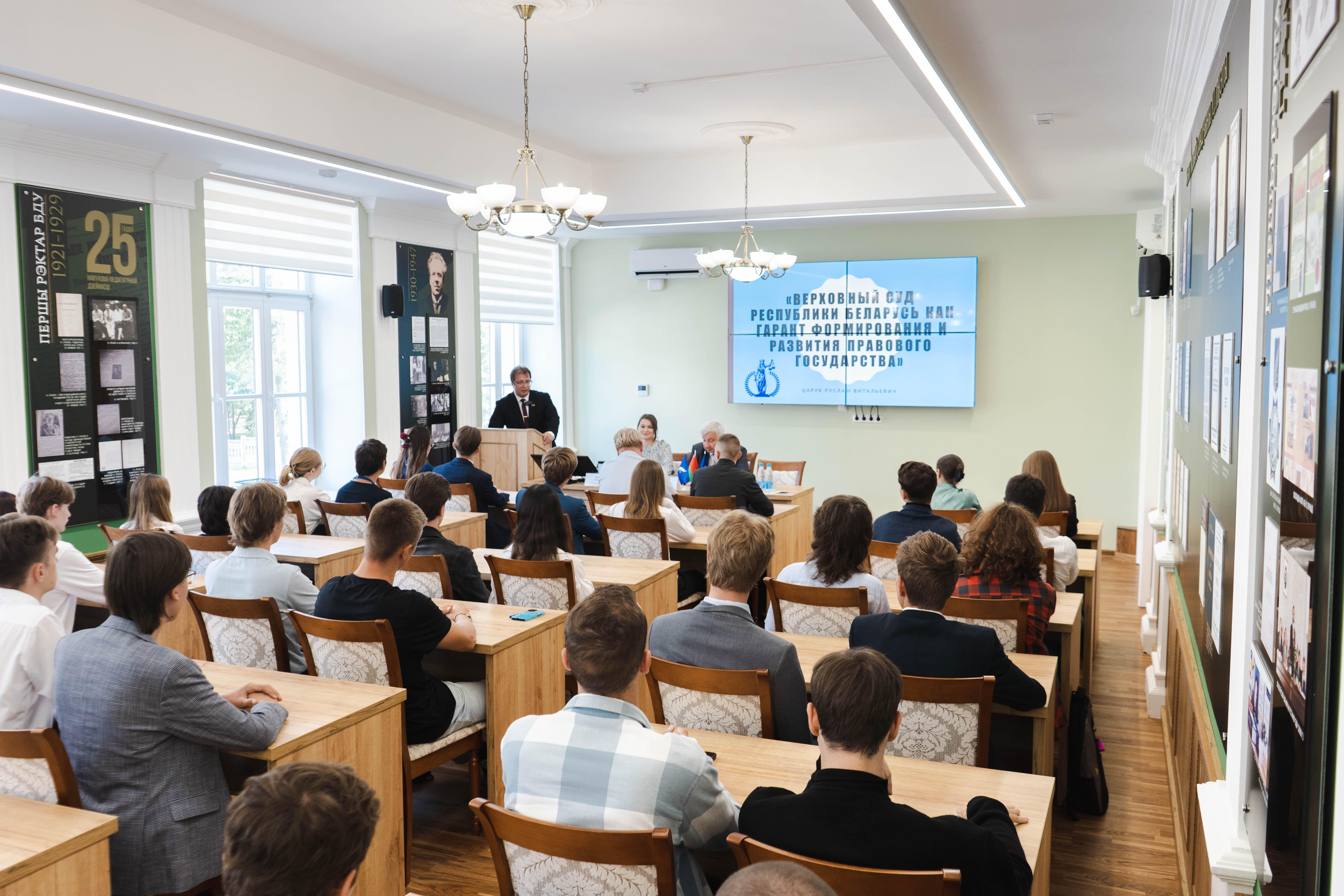 Описание изображения: | На историческом факультете БГУ состоялась знаковая встреча: для студентов и преподавателей с лекцией на тему «Верховный Суд как гарант формирования и развития правового государства» выступил судья Верховного Суда Республики Беларусь Руслан Витальевич Царук. В своем выступлении приглашенный гость осветил ключевые этапы развития судебной системы и ее роль в укреплении правовых основ государства. Студенты и преподаватели получили уникальную возможность узнать о работе высшей судебной инстанции, ее взаимосвязи с историческими процессами и событиями, происходящими в стране. После выступления слушатели смогли задать эксперту интересующие их вопросы и обсудить актуальные темы. Модераторами встречи выступили декан факультета Александр Кохановский и заместитель декана Алина Веремейчик. |