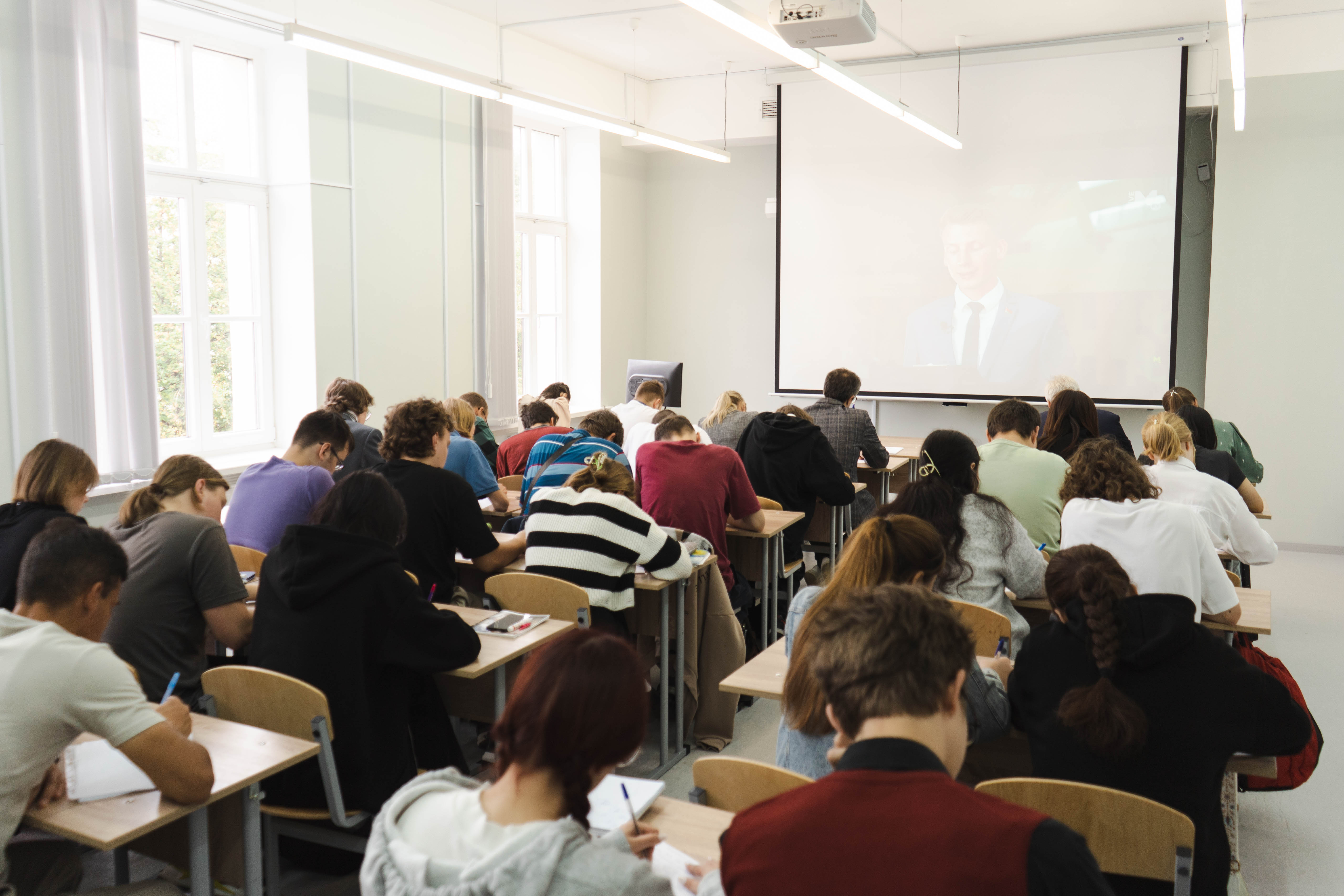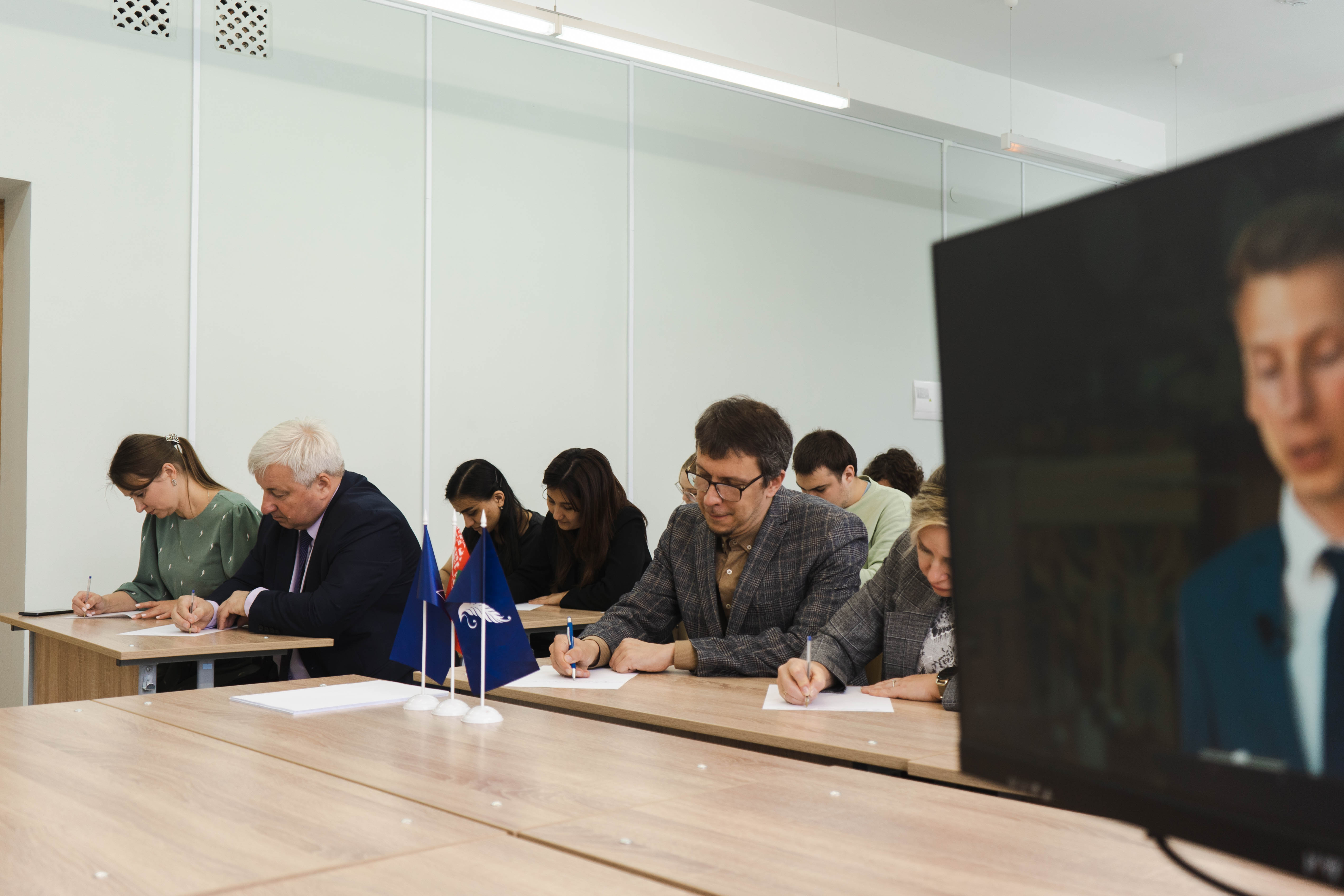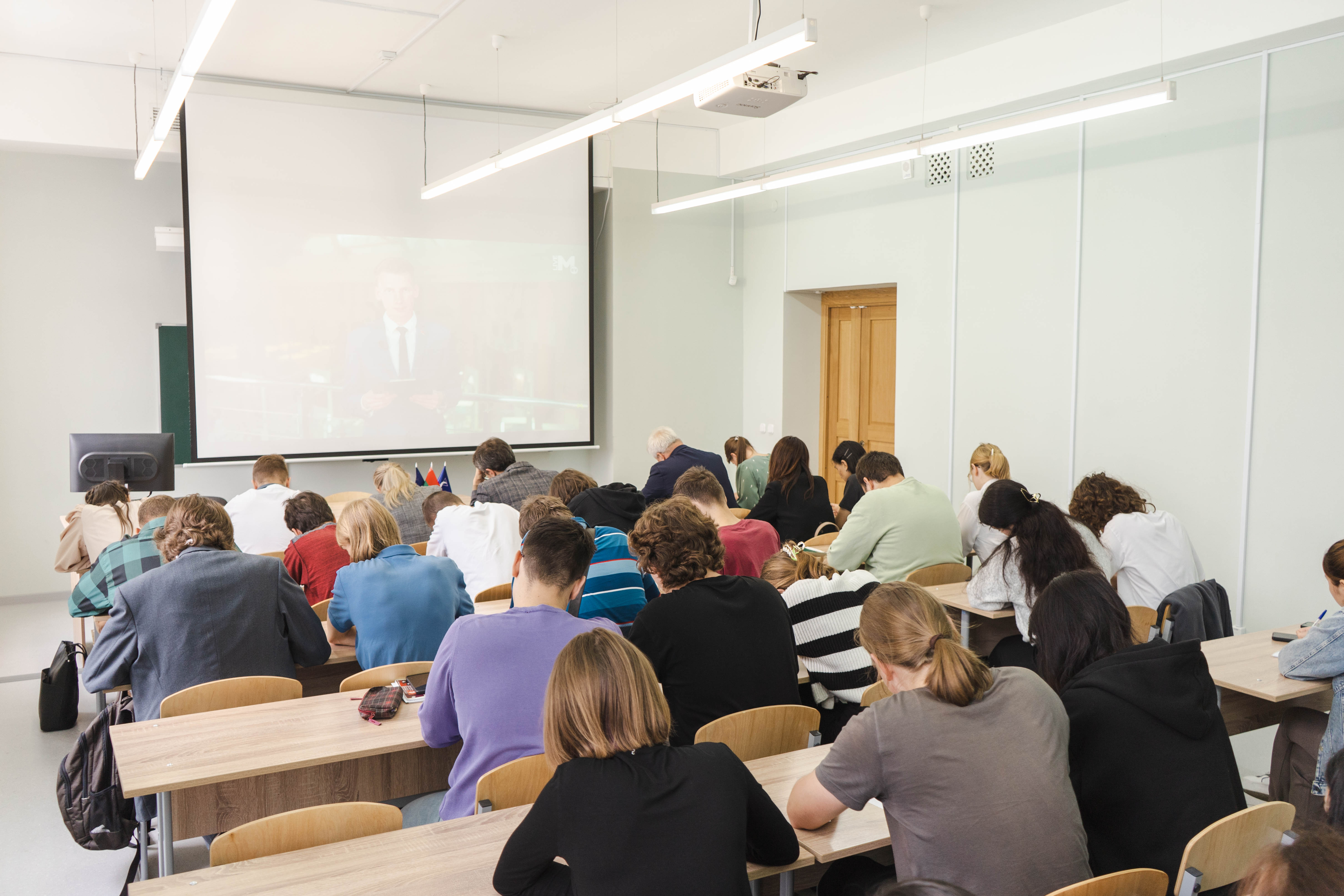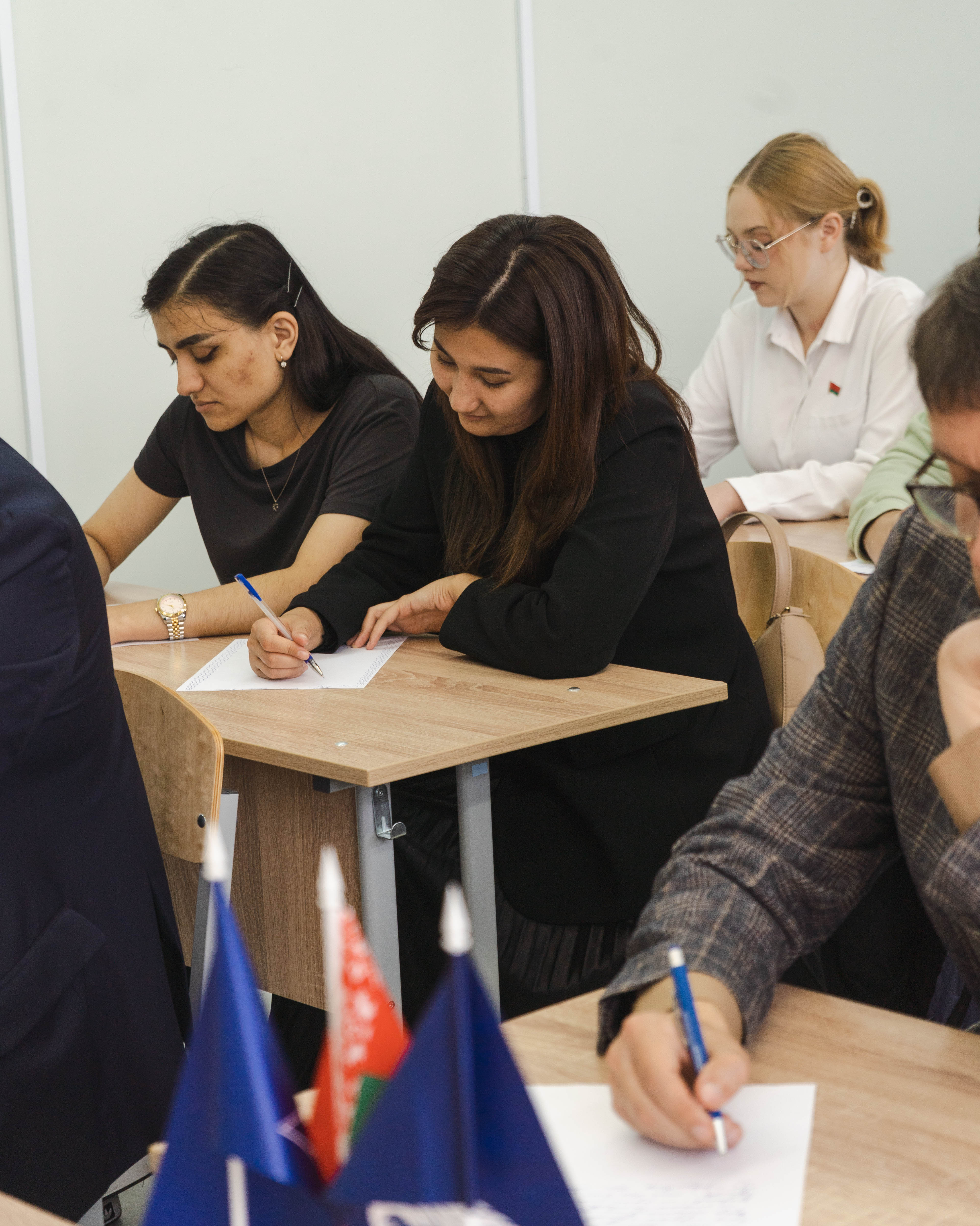 Описание изображения: | Сёння гістарычны факультэт далучыўся да Рэспубліканскай дыктоўкі з нагоды Дня народнага адзінства. За вучнёўскай партай разам з дэканам факультэта прафесарам Аляксандрам Каханоўскім дыктоўку на роднай мове пісалі студэнты першага курса. |