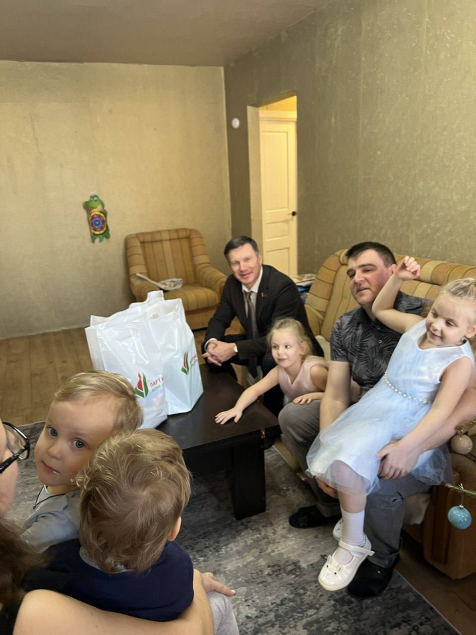 | Описание изображения: | Памятное знакомство состоялось в рамках ежегодной республиканской благотворительной акции «Наши дети». Поводом событию послужили новогодние и рождественские праздники. В домашней атмосфере Андрей Король передал подарки семье Ромашкевич, которая воспитывает четверых детей. Это две пары близнецов: четырехлетние Анна и Мария, двухлетние Мирон и Гордей. Большая семья совместно с депутатом обсудила волнующие повседневные темы, обменялась мнениями по социально-бытовым вопросам, получила экспертные комментарии в области семейной политики. Андрей Король напутствовал в новом году оставаться сплоченными, всегда слышать друг друга и совместными усилиями действовать в любых ситуациях. Также он пожелал здоровья, благополучия, уюта и тепла на весь последующий год. Напомним, руководство, сотрудники и студенты БГУ регулярно становятся участниками благотворительных инициатив. Например, в августе 2024 года в вузе прошла акция «Коробочка добра». Она была организована в рамках ежегодной Республиканской инициативы «Соберем портфель вместе» для помощи детям, которые проживают в неблагополучных семьях, социально-педагогических центрах, домах-интернатах, воспитываются в многодетных семьях. В сентябре того же года в БГУ был дан старт благотворительной акции «Посылка добра и тепла» ко Дню пожилых людей, а в декабре представители БГУ собрали товары первой необходимости и организации досуга в поддержку людей с ограниченными возможностями. К слову, впервые акция «Наши дети» стартовала в 1995 году. Она была организована Министерством образования Беларуси по инициативе Главы государства. Акция направлена на создание праздничной атмосферы и оказание помощи детям, находящимся в сложной жизненной ситуации. В настоящее время формат ее проведения включает праздничные концерты, спектакли, утренники, посещение детских домов и больниц, сбор подарков и др. |