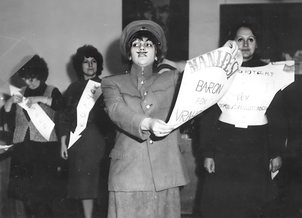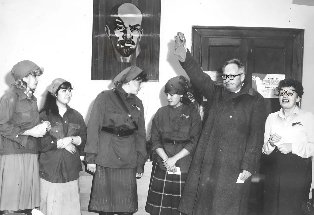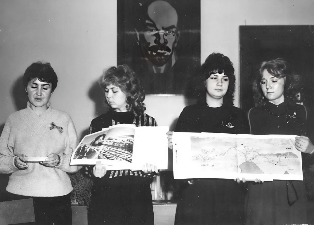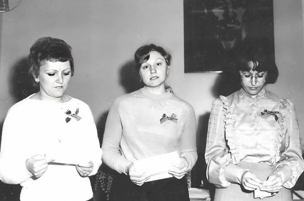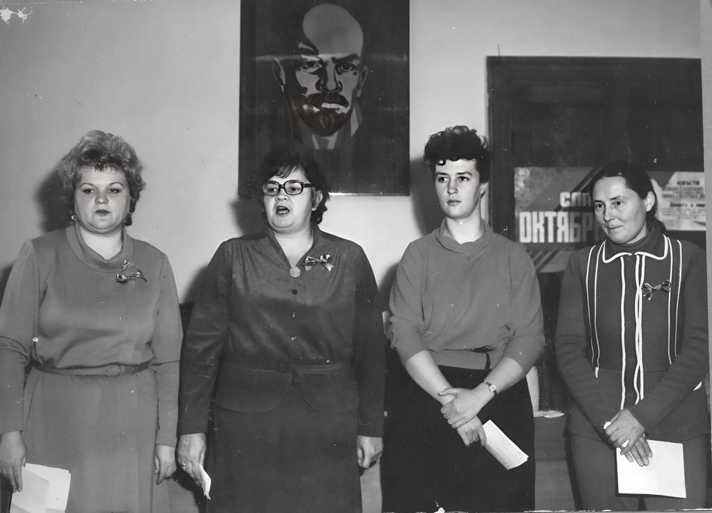 | Описание изображения: | На фотографиях в Фундаментальной библиотеке празднования 70-летие Октябрьской революции. С приветственным словом к коллективу выступила директор Ореховская И.В. Работники отделов представили различные периоды развития Советского государства. В рамках празднования состоялось чествование ветеранов труда старшего библиотекаря отдела справочно-библиографической и информационной работы Дукор Е.Я. и главного библиографа отдела научной обработки литературы и организации каталогов Лихачевой А.И. |
