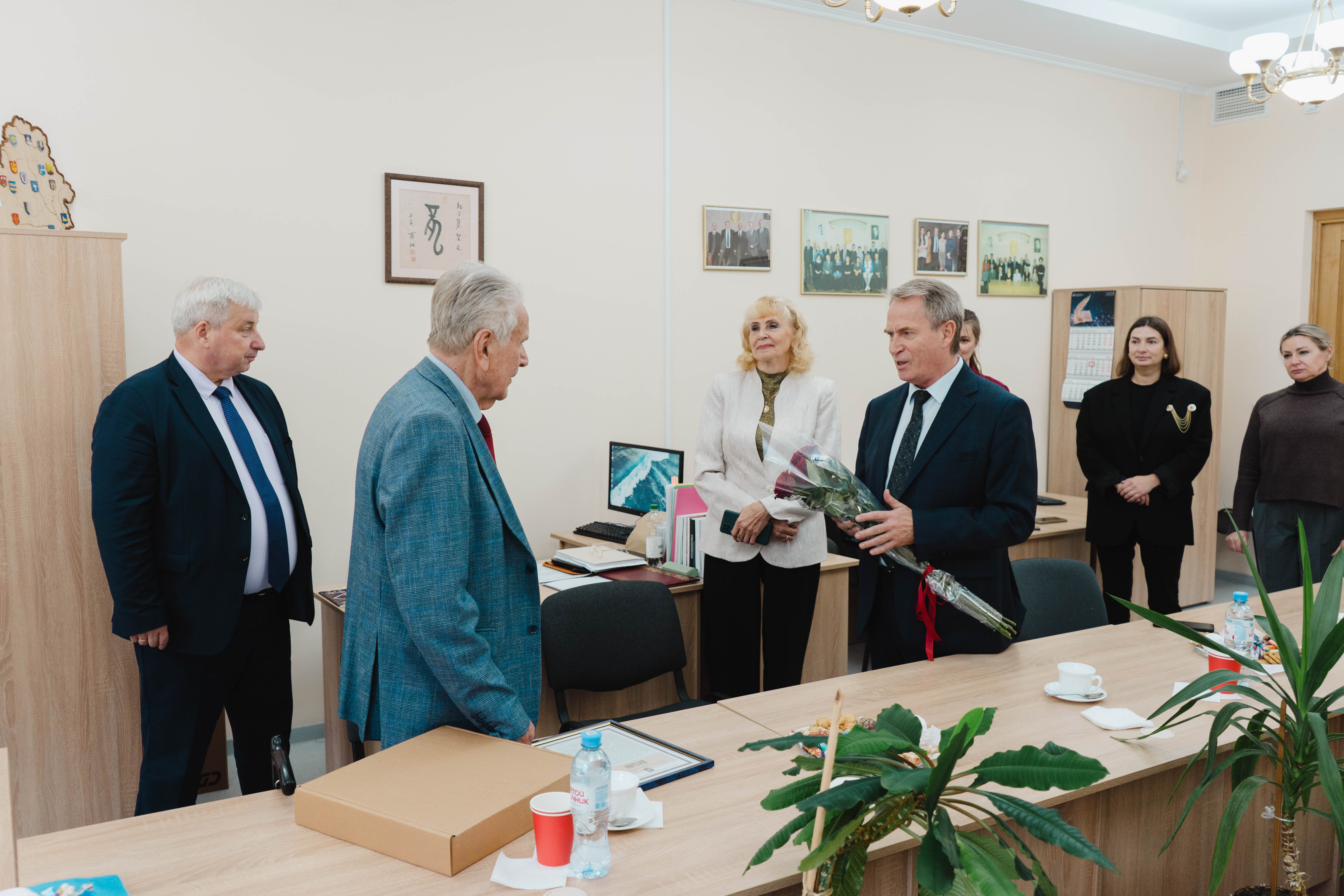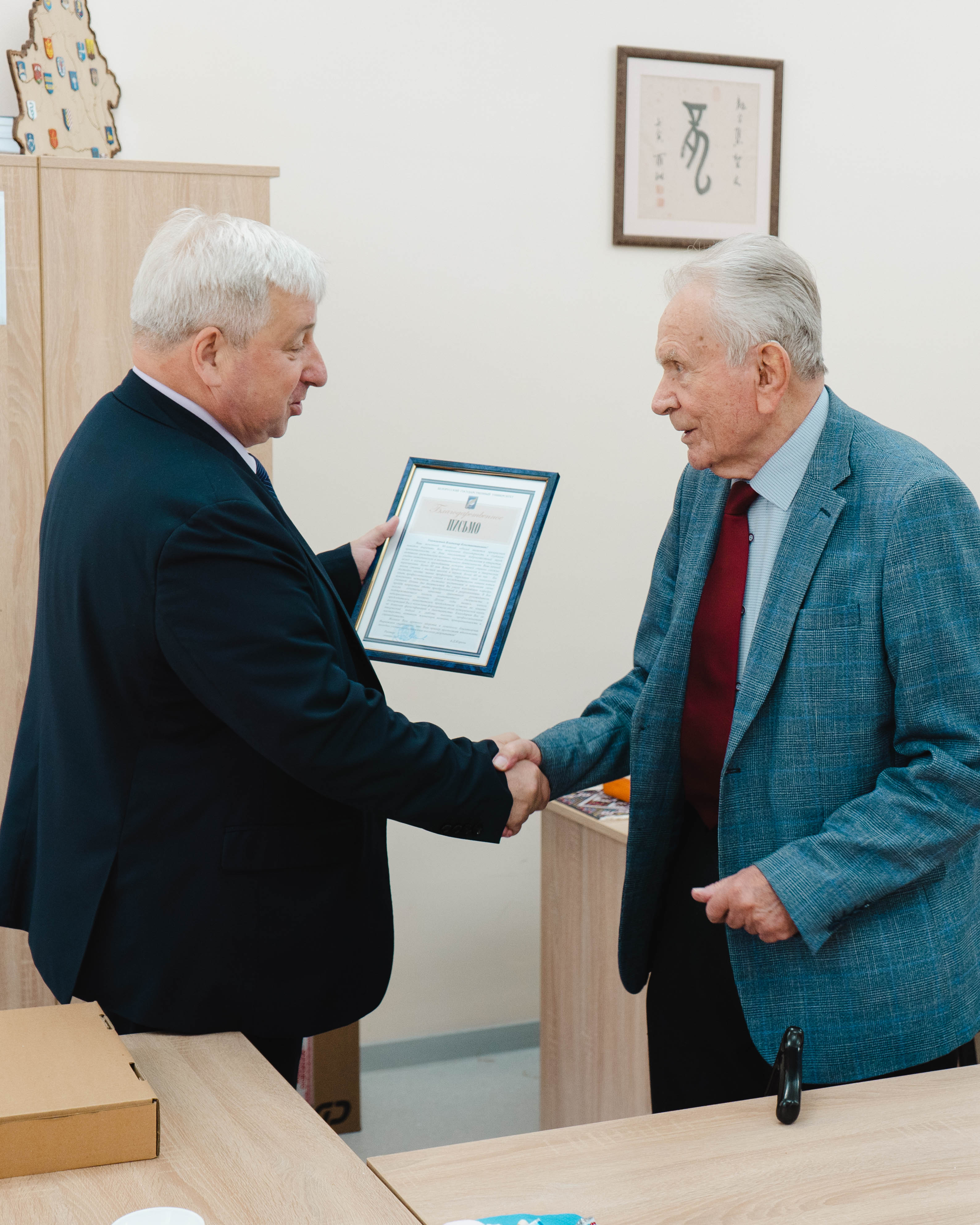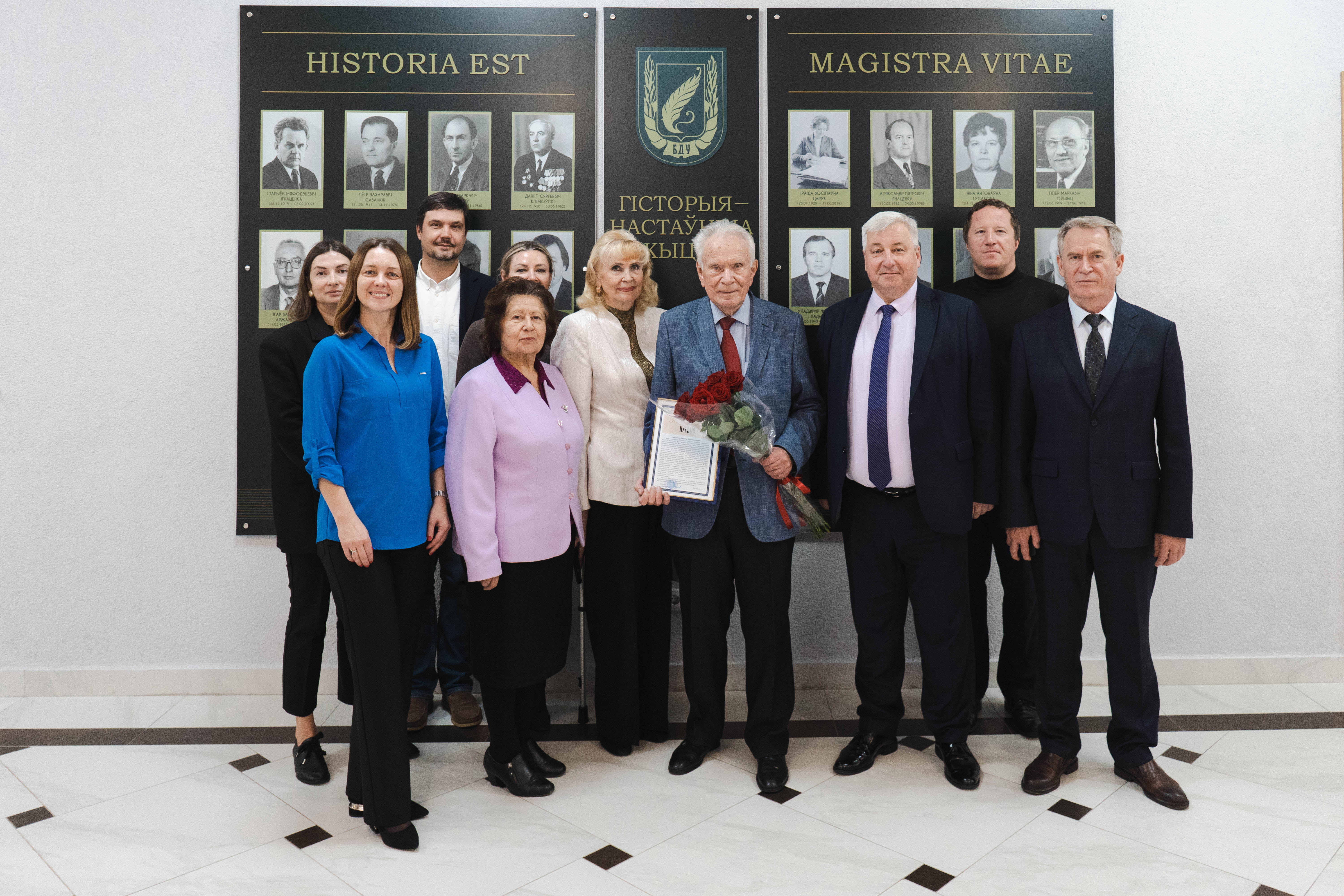 | Описание изображения: | Сёлета 90-гадовы юбілей адзначыў Заслужаны работнік адукацыі Беларусі, Заслужаны работнік БДУ, доктар гістарычных навук, прафесар Уладзімір Канстанцінавіч Коршук. Большую частку жыцця Уладзімір Канстанцінавіч прысвяціў адукацыі і навуцы, амаль 60 гадоў - працы ў ВНУ, больш за 40 гадоў - БДУ, 19 з іх - гістарычнаму факультэту. Няпросты жыццёвы лёс, дзяцінства, скрадзенае вайной, не зламілі веру ў справядлівасць і дабрыню, імкнення да пошуку ісціны. Уладзімір Канстанцінавіч таленавіты навукоўца і кіраўнік - з’яўляецца прызнаным спецылістам па гісторыі палітычных партый і рухаў, займаўся вывучэннем Вялікай Айчыннай вайны, доўгі час узначальваў кафедру гісторыі КПСС, падрыхтаваў больш за 30 кандыдатаў навук. Уладзімір Канстанцінавіч - прыклад сапраўднага Навукоўца, Выкладчыка, Кіраўніка, Чалавека. Супрацоўнікі, студэнты гістарычнага факультэта выказваюць словы шчырай падзякі і глыбокай павагі за Вашу працу, Уладзімір Канстанцінавіч! Моцнага Вам здароўя, нязгаснай энергіі і дабрабыту! |