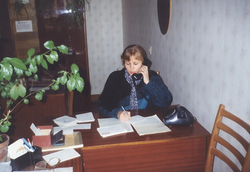 | Описание изображения: | 90-е годы. Библиотекарь I категории Котова Людмила Леонидовна ведет работу с библиотеками РБ |