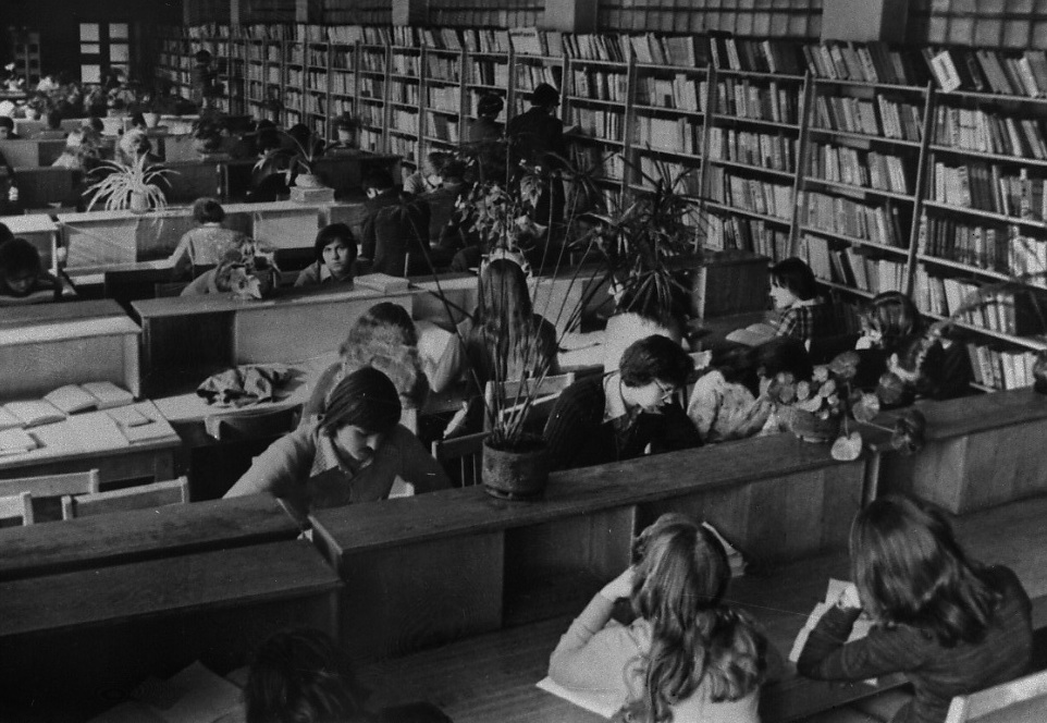 Описание изображения: 1965 год. В читальных залах библиотеки