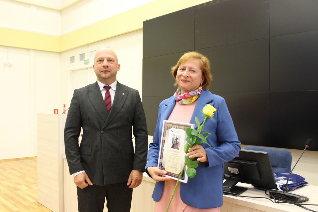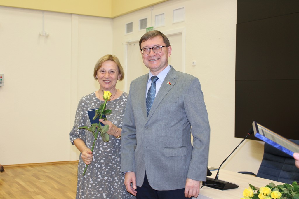 | Описание изображения: | 15 сентября 2025 г. торжественное заседание коллектива Фундаментальной библиотеки БГУ, посвященное Дню библиотек Республики Беларусь прошло в актовом зале учебного корпуса по ул. Долгобродской, 20. В рамках мероприятия состоялось принятие в члены коллектива молодых специалистов, чествование отделов-юбиляров, награждение работников, внесших значительный вклад в развитие библиотеки. Поздравить коллектив с профессиональным праздником пришел проректор по научной работе Андрей Викторович Блохин. За плодотворную трудовую деятельность и вклад в развитие Фундаментальной библиотеки, а также в связи с празднованием 15 сентября профессионального праздника – Дня библиотек Беларуси наградами БГУ отмечены: Нагрудным знаком «100 лет БГУ» награждена Майя Владимировна Сенько, заместитель директора по новым технологиям; Ценные подарки получили Илона Николаевна Щекина, заведующий отделом обслуживания факультетов радиофизики и компьютерных технологий, биологического и социокультурных коммуникаций и Лилия Чеславовна Григоркевич, библиотекарь II категории отдела управления библиотечным фондом; Благодарность БГУ была вручена Алесе Васильевне Кузьменко, библиотекарю I категории отдела комплектования информационных ресурсов; Почетные грамоты БГУ получили Ольга Александровна Дубовец, заведующий отделом обслуживания юридического факультета, Светлана Николаевна Азаренко, библиотекарь I категории отдела информационного обслуживания учебного процесса, и Светлана Владимировна Кулак, ведущий библиотекарь отдела обслуживания факультета международных отношений; Благодарность ректора БГУ была вручена Ольге Феликсовне Баньковской, заведующему отделом обслуживания химического факультета. Профессиональный праздник, День библиотек Беларуси, установлен Указом Президента Республики Беларусь от 8 сентября 2001 г. № 483 и приурочен к приданию в 1923 г. библиотеке БГУ статуса государственной библиотеки. Эта дата считается началом создания Национальной библиотеки Беларуси, которая была выделена из структуры БГУ в 1926 году. |