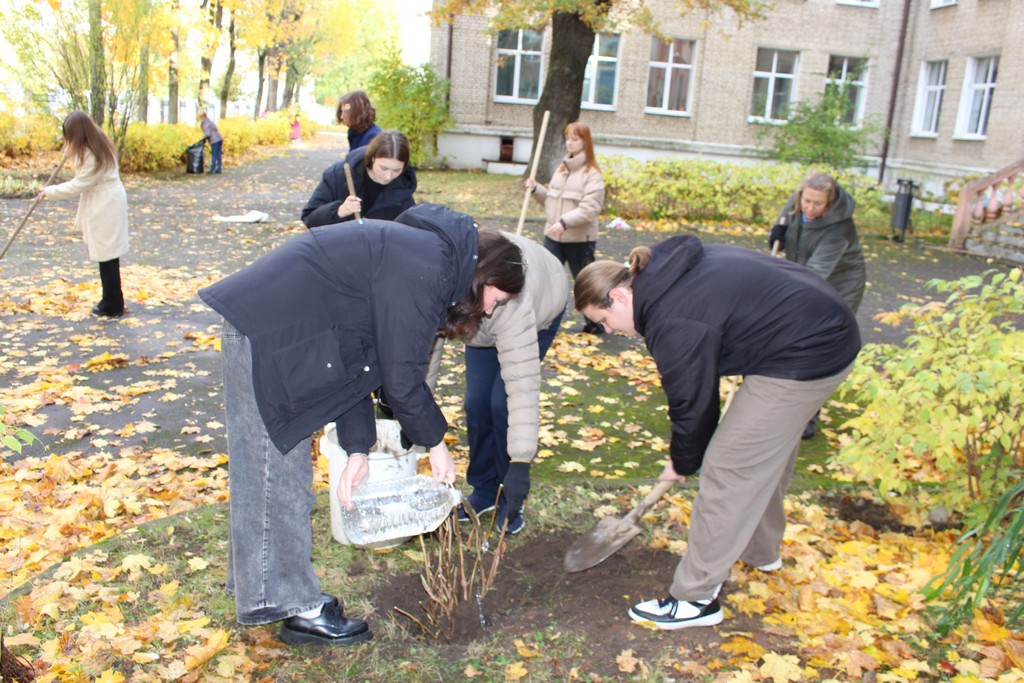 | Описание изображения: | 13 октября, в преддверии годовщины университета и в рамках Года благоустройства, студенты исторического факультета совместно с работниками Фундаментальной библиотеки активно потрудились над преображением территории корпуса по ул. Менделеева, 36, где на время ремонта главного корпуса БГУ разместилась Фундаментальная библиотека. Что мы сделали: посадили декоративные кустарники, которые будут радовать глаз и создавать уютную атмосферу; собрали опавшие листья, чтобы подготовить почву к зиме и сделать территорию чище; привели в порядок кустарники, придав им аккуратную форму. Мы верим, что такие акции не только делают БГУ красивее, но и воспитывают бережное отношение к окружающей среде. |