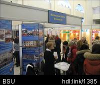Описание изображения: БГУ был представлен на 7-ой специализированной выставке «Образование и карьера-2009». Она прошла с 26 по 28 февраля в столичном Дворце молодежи. В рамках выставки специалисты Белгосуниверситета провели семинары для абитуриентов и их родителей: «Естественно – научное образование в БГУ», «Гуманитарное образование в БГУ» , «Социально-экономическое образование в БГУ», «Возможности получения второго высшего образования в БГУ. На семинарах выступили представители всех факультетов Белгосуниверситета, которые рассказали об особенностях подготовки специалистов по соответствующим специальностям.
