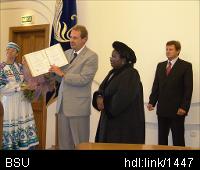 Нкосазана Клэрыс Дламини-Зума – министр иностранных дел, Южно-Африканская Республика (2007).jpg | Нкосазана Дламини-Зума, министр иностранных дел Южно-Африканской Республики, удостоена звания "Почётный профессор БГУ" | 833,12 kB | JPEG | ![]() Просмотреть/Открыть |