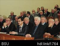 Название документа: Профессорское собрание БГУ. Участники с первым проректором Олегом Ивашкевичем и ректором по научной работе Василием Сафоновым