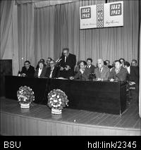 | Название документа: | 14-го октября 1982 года на базе БГУ состоялась республиканская научная конференция, посвященная 100-летию со дня рождения Я. Купалы и Я. Коласа. (5 фото) |
