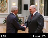 2017.04.28 Президент Беларуси Александр Лукашенко вручил Государственную награду ректору БГУ академику Сергею Абламейко