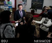 Описание изображения: Торжественное чествование лауреатов специального фонда Президента Республики Беларусь по социальной поддержке одаренных учащихся и студентов состялось 22 января в Белорусском государственном университете. Талантливых студентов, молодых ученых и преподавателей БГУ поздравил министр образования Республики Беларусь Михаил Журавков, председатель совета специального фонда Президента Республики Беларусь по социальной поддержке одаренных учащихся и студентов ректор БГУ академик Сергей Абламейко, первый заместитель министра образования Республики Беларусь Вадим Богуш, секретарь совета фонда Юлия Пашкевич. В этот день награды специального фонда Президента Республики Беларусь получили 35 представителей БГУ. Так, нагрудными знаками и свидетельствами наградили победителей Международной студенческой олимпиады в области информатики и программирования (Россия, 2013) Сергея Жгировского, Андрея Малевича, Романа Удовиченко, Евгения Грицкевича, Алексея Колесова, Александра Некрашевича, а также призеров ХХV Конференции молодых ученых Союза стран Европейского союза (Чехия, 2013) Максима Безрукова и Александра Стадольника. Свидетельствами о назначении стипендии Президента Республики Беларусь за успехи в учебе и науке были награждены Екатерина Кумец, Екатерина Тавгень и Алексей Федоров. Свидетельства фонда были вручены также трем победителям XIX Республиканского конкурса научных работ студентов; шести призерам Белорусской студенческой юридической олимпиады и лауреату международных, республиканских конкурсов и других мероприятий. Не остались без внимания в этот день и преподаватели БГУ. За особый вклад в развитие способностей одаренных студентов и учащихся свидетельствами фонда были награждены 12 сотрудников вуза. Кроме того, свидетельства фонда получили научные руководители двух СНИЛ. Поздравления приняли также победители конкурса на лучшую научную работу студентов БГУ. Диплом конкурса в области естественных и технических наук был вручен магистранту физического факультета Максиму Горлачу за работу «Самонаведенный вращательный момент в анизотропной среде». Дипломом конкурса на лучшую научную работу студентов БГУ в области социальных и гуманитарных наук былнагражден студент 5 курса исторического факультета Филипп Подберезкин за работу «Граф Герхард фон Клевэ і яго канфлікт з Ноўгарадскай рэспублікай», а его научный руководитель доцент кафедры истории России Алексей Мартынюк за высокий уровень руководства научно-исследовательской работой студентов удостоен грамоты БГУ. Грамоты за успешное участие в конкурсе получили еще 14 студентов БГУ.