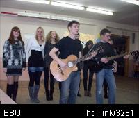 Описание изображения: 30 марта 2011 г. на ФМО состоялся ежегодный, десятый по счету, фонетический конкурс по испанскому языку. В конкурсе приняли участие студенты факультета, изучающие испанский язык, выпускники факультета - бывшие победители конкурса, ученики средней школы № 114 им. Симона Боливара. Мероприятие посетил Чрезвычайный и Полномочный Посол Республики Куба Альфредо Ньевес Портуондо, а также сотрудники Посольства Боливарианской Республики Венесуэла в Республике Беларусь, преподаватели испанских университетов. Победители: 1 место — 2-й курс отделения "Международное право" (2-й язык), 2 место — 4-й курс отделения "Международные отношения" (1-й язык), 3 место — 2-й курс отделения "Международное право" (1-й язык). Победители индивидуального конкурса: Кирилл Батуро, Марина Зенкова, Ольга Ромейко, Зоя Ильенко!