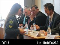 Описание изображения: | 9 марта 2015 г. на факультете международных отношений БГУ состоялась встреча с послами стран — членов Европейского союза по Восточному партнерству. Их сопровождали главы и заместители руководителей дипломатических миссий, аккредитованных в Республике Беларусь, из Венгрии, Латвии, Литвы, Нидерландов, Польши, Чехии, Швеции, Словакии. Благодаря хорошему владению гостей английским и русским языками, студенты и преподаватели смогли свободно участвовать в обсуждении ряда волнующих их вопросов. В дискуссии затрагивались проблемы готовности ЕС развивать сотрудничество с Республикой Беларусь, а также перспективы включения нашей страны в Болонский процесс с учетом взаимной согласованности интересов, смягчение визового режима. Мероприятие позволило больше узнать о ЕС, о его деятельности, дальнейших перспективах. И, безусловно, это была уникальная возможность обсудить интересующие вопросы и услышать мнения экспертов высокого уровня. |