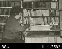 Описание изображения: Старший библиотекарь Пестковская Л.К. расставляет регистрационные карточки.