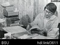 Описание изображения: Старший библиотекарь Ковальчук Л.А. ведет статистику отдела