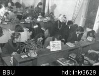 | Описание изображения: | Библиотекарь 2-ой категории Веселовская Е.Ю. и библиотекарь 2-ой категории Волохович В.Н. обслуживают читателей поточным методом |