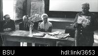 | Описание изображения: | 1984 год. Встреча студентов географического факультета и сотрудников БГУ с Героем Советского Союза полковником Е.Г. Вайнрубом |
