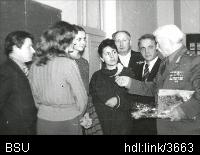 | Описание изображения: | 1985 год. Встреча студентов и сотрудников географического факультета с генерал-лейтенантом танковых войск Сергиенко С.С. |