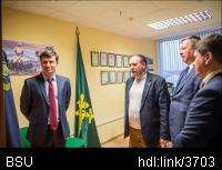 | Название документа: | Посещение ректором БГУ Андреем Королем кафедр, учебных аудиторий и структурных подразделений ФМО БГУ. На фото: (слева направо) заведующий кафедрой таможенного дела ФМО Виктор Острога, начальник управления международных связей вуза Вадим Резников, ректор БГУ Андрей Король |