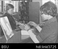 | Описание изображения: | Библиотекарь Сергеева Н.М. работает с заказами читателей. |