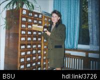 | Описание изображения: | Библиотекарь Николаева Е.Н. расставляет карточки новых поступлений в алфавитный каталог. |