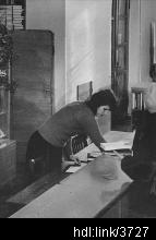 Описание изображения: | Библиотекарь Казаченко Т.Г. обслуживает читателей. |