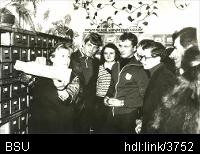 | Описание изображения: | 1980 год. Занятия по основам библиотечно-библиографических знаний со студентами 1-го курса проводит главный библиотекарь справочно-библиографического отдела Р.И. Ляхович |