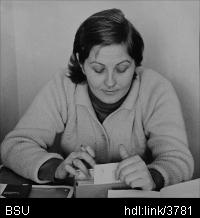 Описание изображения: | Старший библиотекарь Свирская Валентина Васильевна осуществляет расстановку карточек. |