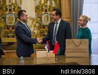 | Описание изображения: | Делегация Министерства образования, науки и технологического развития Республики Сербия посетила БГУ. Возглавил ее заместитель министра образования, науки и технологического развития по вопросам развития технологий, передачи знаний и инновационной системы Саша Стоянович. Состоялась встреча с проректором по научной работе БГУ Василием Сафоновым и начальником управления международных связей Вадимом Резниковым. Гостям представили презентацию о структуре, кадровом составе, научно-исследовательской, образовательной и практической деятельности БГУ. Василий Сафонов подчеркнул: «Университет принимает непосредственное участие в решении как фундаментальных, так и прикладных задач, которые сегодня существуют в различных сферах деятельности нашей страны». Также проректор по научной работе отметил, что в белорусском вузе осуществляется все возможное для продвижения БГУ на международном образовательном пространстве. Стороны рассмотрели перспективы возможного сотрудничества по различным направлениям в области образования и науки. «Мы поделимся информацией о вашем университете с сербскими вузами, расскажем о его потенциале и возможностях с целью укрепления и развития партнерских отношений», – подытожил заместитель министра образования, науки и технологического развития по вопросам развития технологий, передачи знаний и инновационной системы Саша Стоянович. Отметим, в настоящее время в БГУ действуют соглашения о сотрудничестве с сербскими Белградским, Приштинским университетами, Государственным университетом в Новом Пазару, а также Университетом «Business Academy» в Нови-Саде. |