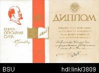 Название документа: | 1977 Диплом победителю Всесоюзного смотра работы библиотек - библиотеке Белорусского ордена Трудового Красного Знамени государственного университета им. В.И.Ленина |