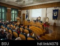 | Описание изображения: | В рамках заседания Совета БГУ были награждены сотрудники университета. Нагрудного знака «Отличник образования» Министерства образования удостоен декан механико-математического факультета БГУ Дмитрий Медведев. Награда присуждена за значительный личный вклад в развитие науки и инновационной деятельности. Почетными грамотами Высшей аттестационной комиссии Республики Беларусь награждены сотрудники ФФСН БГУ. В их числе: профессор кафедры социологии Лариса Титаренко и заведующий кафедрой философии культуры Анатолий Легчилин. Данные награды присуждены за многолетнюю работу по подготовке и аттестации научных и научно-педагогических кадров высшей квалификации. Состоялось награждение победителей конкурса на лучшую студенческую научно-исследовательскую лабораторию по итогам 2017 года. Диплома победителя состязания удостоена «ГИС-лаборатория», руководителями которой являются заведующий кафедрой почвоведения и земельных информационных систем географического факультета БГУ Дмитрий Курлович и доцент этой же кафедры Наталья Жуковская. В номинации «Вклад СНИЛ в совершенствование учебного процесса» дипломами награждены СНИЛ «Структура и динамика биоразнообразия» и СНИЛ «Экономист-международник» руководителями которых являются ассистент кафедры зоологии биологического факультета Олег Синчук и доцент кафедры международных экономических отношений ФМО Елена Семак соответственно. В номинации «Вклад СНИЛ в подготовку кадров высшей квалификации» награждены СНИЛ «Компьютерный анализ данных и моделирование» и СНИЛ «История Беларуси XIX–XX века», руководителями которых выступают доцент кафедры математического моделирования и анализа данных ФПМИ Владимир Малюгин и заведующий кафедрой истории Беларуси нового и новейшего времени исторического факультета Виталий Макаревич соответственно. В категории «Научно-исследовательская и инновационная деятельность» дипломов победителей удостоены СНИЛ «Модификация свойств материалов» и СНИЛ «Инновационные технологии в туризме». Руководители – заведующий НИЛ физики ионно-плазменной модификации твердых тел кафедры физики твердого тела физического факультета Андрей Кулешов и преподаватель кафедры международного туризма ФМО Наталья Борисенко-Клепач соответственно. В номинации «Деятельность СНИЛ по привлечению финансирования» дипломы победителей вручены СНИЛ «Региональные демографические проблемы» и СНИЛ «Компьютерный дизайн». Первая работает под руководством заведующей кафедрой экономической географии зарубежных стран географического факультета Екатерины Антиповой. Вторая – доцентов кафедры ФСК Сергея Царика и Ирины Сиротиной. Диплома победителя в категории «СНИЛ с наилучшей положительной динамикой за последние три года» удостоена СНИЛ «Теория и практика таможенного дела и внешнеэкономической деятельности», возглавляемая доцентом кафедры таможенного дела ФМО Владимиром Ляховским. |