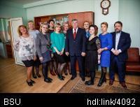 Описание изображения: Заседание расширенного Совета Института журналистики прошло в БГУ. Его участниками стали ректор БГУ Андрей Король, экс-директор института Сергей Дубовик, заместитель министра информации Беларуси Павел Легкий, а также весь профессорско-преподавательский состав и сотрудники института. Сергей Валентинович Дубовик на протяжении 13 лет возглавлял факультет журналистики, а позже – Институт журналистики БГУ. Сегодня, 14 апреля, на совете в его адрес звучали благодарственные слова за профессиональную деятельность, которую он посвятил Институту журналистики. «Сергей Валентинович сделал многое, чтобы подготовка журналиста в БГУ стала брендом, а выпускник Института журналистики – частью элиты общества. Я искренне благодарен Сергею Валентиновичу за его профессионализм и характер. В разные непростые времена он был гарантом защиты коллектива и направлений в подготовке наших ребят», – отметил ректор БГУ Андрей Король. Заместитель министра информации Беларуси Павел Легкий вручил Сергею Дубовику благодарность Министерства информации за большой личный вклад в развитие информационного пространства и подготовку журналистских кадров. Также с благодарственной речью от имени всего коллектива выступила исполняющая обязанности директора Института журналистики Ольга Самусевич. Она напомнила всем присутствующим об исторических этапах развития института под руководством Сергея Дубовика. «Сергей Валентинович нам доверял, и поэтому мы хотели работать. Ваша эпоха вплетена в историю Института журналистики», – подчеркнула Ольга Михайловна. В завершении заседания, которое прошло в теплой и дружеской атмосфере, Сергей Дубовик подвел итоги своей руководящей деятельности. «Тринадцать лет пролетели как один день. В своей работе я всегда старался доверять людям, поддержать, наградить и поощрить труд каждого, не мешал им проявлять себя. Спасибо за 13 лет плодотворной, творческой, интересной и счастливой работы. Я люблю вас всех», – резюмировал Сергей Валентинович.