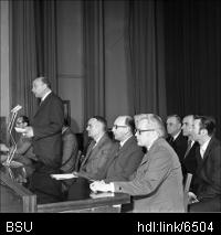 | Название документа: | Торжественный вечер, посвященный 30-летию Победы над фашизмом. В центре проректор по научной работе профессор Володько Леонид Викентьевич. 6 мая 1975 |