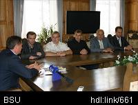 Описание изображения: Студенты факультета прикладной математики и информатики завоевали три медали на 20-й Международной математической студенческой олимпиаде, завершившейся 12 августа в г. Благоевграде (Болгария). Золотым призером стал третьекурсник Сергей Финский, а «серебром» награждены третьекурсник Владислав Стажинский и четверокурсник Артем Говоров. Отметим, что Беларусь на этих престижных математических состязаниях была представлена только командой БГУ. Всего в олимпиаде приняли участие свыше 300 студентов более чем из 35 стран мира. Воспитанники БГУ принимают участие в Международной математической студенческой олимпиаде с 2001 года. За этот период на счету БГУ 37 золотых, 30 серебряных и пять бронзовых медалей. Торжественная церемония награждения победителей 20-й Международной математической студенческой олимпиады состоялась 15 августа в БГУ. Чествовал призеров первый проректор БГУ Михаил Журавков, декан ФПМИ БГУ Павел Мандрик и зам.декана этого факультета Дмитрий Базылев.