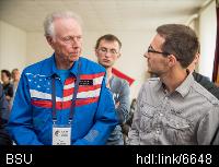 | Описание изображения: | Космонавты и астронавты из России, США, Германии и Швеции посетили БГУ. Возможность пообщаться с живыми легендами космонавтики представилась студентам и сотрудникам шести факультетов БГУ: биологического, географического, механико-математического, физического, химического, радиофизики и компьютерных технологий, а также Института прикладных физических проблем им. А.Н. Севченко БГУ. После пресс-конференций и автограф-сессий космонавты встретились с ректором БГУ Андреем Королем. Он поблагодарил именитых гостей за визит и высоко оценил важность таких уникальных встреч для студентов, мечтающих работать в космической отрасли. В обращении к космонавтам руководитель БГУ отметил многолетнюю работу университета в области аэрокосмического образования, результаты сотрудничества с различными корпорациями, занимающимися космическими исследованиями. В частности, разработки БГУ используются на Международной космической станции (МКС). В свою очередь космонавт из России Антон Шкаплеров отметил активность студентов БГУ во время общения, их заинтересованность в изучении космоса, а также выразил надежду на регулярность встреч со студенческой аудиторий. Визит в БГУ состоялся в рамках XXXI Международного конгресса Ассоциации участников космических полетов, который проходит в Минске с 9 по 15 сентября. |