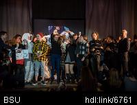| Описание изображения: | Команда механико-математического факультета БГУ завоевала кубок ректора в конкурсе «Капустник-2018». Первокурсники также стали сильнейшими в номинации «Лучшее художественное оформление номера».