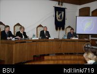 | Описание изображения: | В Белорусском государственном университет 2 марта состоялась пресс-конференция для СМИ, посвященная началу вступительной кампании и кампании по празднованию 90-летия БГУ. Отвечали на вопросы журналистов ректор вуза академик Сергей Абламейко, первый проректор Михаил Журавков, начальник Главного управления учебной и научно-методической работы Людмила Хухлындина и ответственный секретарь приемной комиссии БГУ Вячеслав Молофеев. Мекроприятие собрало представителей более трех десятков средств массовой информации. |