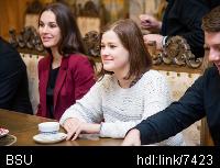 | Описание изображения: | Прием состоялся сегодня, 28 февраля. Участниками мероприятия также стали проректор по воспитательной работе и социальным вопросам Иван Янушевич, начальник управления по делам культуры Владимир Макаревич и его заместитель Андрей Рында. Андрей Король поздравил команду с выходом в 1/4 финала Высшей лиги КВН и поинтересовался, какие эмоции испытают игроки, выступая перед почти трехтысячной аудиторией, и как реагировали зрители на выступление белорусов. Высшей наградой зала в среде Квнщиков считается «словленный паровоз» из нарастающих аплодисментов. «Детей Тьюринга» чествовали, со слов игроков, 43 секунды. Студенты также рассказали о подготовительных этапах к выступлениям в Высшей лиге, источнике шуток, репетициях творческих номеров. В завершение встречи ректор пожелал команде успешного выступления и вручил капитану сертификат на приобретение брендированной одежды с символикой университета. В свою очередь ребята пригласили Андрея Короля посетить четвертьфинал с их игрой и возможно даже в финал конкурса. Напомним, что в составе сборной вуза студенты факультета прикладной математики и информатики во главе с четверокурсником Марком Величко. Квнщики успешно прошли 1/8, заняв первое место в данном этапе. Сезон следующего отборочного тура пройдет с апреля по май в Москве. В последний раз команда БГУ выступала в Высшей лиге главного юмористического конкурса в 2013 году. |