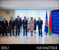| Описание изображения: | 28 мая по случаю 100-летия БГУ состоялось торжественное мероприятие Национальной комиссии Беларуси по делам ЮНЕСКО. Участниками стали министр иностранных дел и председатель названной комиссии Владимир Макей, первый заместитель министра образования Ирина Старовойтова, ректор БГУ Андрей Король, а также представители кафедр ЮНЕСКО в белорусских вузах. В рамках мероприятия прошли тематические экспозиции, отражающие сотрудничество БГУ и ЮНЕСКО. Это фото- и книжная выставка публикаций преподавателей, демонстрация наиболее значимых научных достижений университета. |