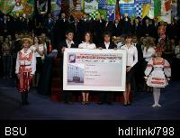 Описание изображения: День знаний 1 сентября в Белорусском государственном университете нынче по традиции был посвящен первокурсникам. Их сейчас в главный вуз страны зачислено более 6 тысяч. Как сообщили корреспонденту агентства «Минск-Новости» в БГУ, первые слова приветствия руководства университета были обращены к студенческому активу 1 курса. Встреча ректора с ним прошла в университетском дворике. А затем всех первокурсников пригласили в столичный Дворец спорта на большую театрализованную праздничную программу «Виват студент!». Торжественную часть открыло шествие деканов, внесение штандартов БГУ и всех факультетов. Первокурсники дали клятву студента Белгосуниверситета, после этого каждому из них был вручен символический студенческий билет. Праздник продолжится концертной программой «Я - студент БГУ!». Новоиспеченных студентов порадовали выступлениями творческие коллективы: как любительские университетские, так и профессиональные, в том числе Белорусский государственный хореографический ансамбль «Хорошки», звезды отечественной эстрады. Завершился праздник дискотекой.