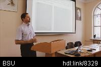 Название документа: Міжнародная навуковая канферэнцыя. Дакладчык А.М. Латушкін, дацэнт кафедры крыніцазнаўства (1 фота)
