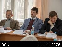 | Описание изображения: | на фота: А. Яноўскі, прафесар, загадчык кафедры гісторыі Расіі, В. Макарэвіч, дацэнт, загадчык кафедры гісторыі Беларусі новага і навейшага часу гістарычнага факультэта БДУ, М. Мязга, доктар гістарычных навук, загадчык кафедры ўсеагульнай гісторыі Гомельскага дзяржаўнага ўніверсітэта імя Ф. Скарыны. |