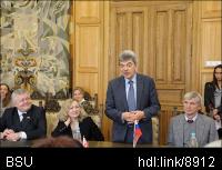 | Описание изображения: | 4 мая 2016 года в Гобеленовом зале ректор БГУ академик Сергей Владимирович Абламейко открыл Дни исторического факультета МГУ. В мероприятии приняли участие официальные делегации исторических факультетов двух ведущих университетов Беларуси и России. В торжественной обстановке состоялось подписание Соглашения о сотрудничестве между Белорусским государственным университетом и Федеральной национально-культурной автономией «Белорусы России». Председатель автономии Сергей Львович Кандыбович познакомил с деятельностью общественной организации, занимающейся сохранения и развития самобытности белорусов России, а также поддержанием культурных связей между Беларусью и Россией. |