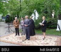 | Описание изображения: | Праздник «Победа в сердце каждого», посвященный Дню Победы, прошел 8 мая в Белорусском государственном университете. На торжественный митинг к 12 часам во внутреннем дворике БГУ собрались многочисленные студенты и сотрудники университета, сюда же университетским транспортом прибыли и главные герои торжества – ветераны Великой Отечественной войны, которых в этот раз было около 30 человек. Ветеранов сердечно поздравили и поблагодарили за их мужество ректор академик Сергей Абламейко, председатель совета ветеранов БГУ профессор Николай Юрчук, а также представители молодежных организаций. Ветераны вместе с руководством, преподавателями, сотрудниками и студентами вуза приняли участие в митинге-реквиеме, возложили цветы и венки к памятнику погибшим на войне преподавателям и студентам БГУ, а курсанты военного факультета прошли торжественным маршем. Продолжился праздник у здания ректората, где были воссозданы реалии военного времени: здесь расположились легендарные «ЗИЛы» и солдатская полевая кухня. К слову, особой популярностью как всегда пользовалась походная каша. А еще были представлены миниатюрные модели военной техники и тематическая выставка книг из фондов Фундаментальной библиотеки БГУ. Венцом праздника стали выступления оркестра 86-ой Волковысской Краснознаменной Ордена Александра Невского бригады связи и творческих коллективов БГУ. Организаторы данного мероприятия – управления по делам культуры и воспитательной работы с молодежью. |