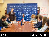 Описание изображения: | В ее рамках председатель РОО «Белая Русь» Олег Романов вручил членские билеты 15 студентам и сотрудникам юридического факультета БГУ. В начале встречи председатель общественного объединения подчеркнул, что БГУ – это ядро национальной интеллектуальной элиты Беларуси. «Те люди, которые здесь работают и учатся, формируют в том числе и духовную культуру нашего общества и государства. В перспективе студенты будут работать в государственной системе нашей страны. Поэтому важно транслировать здесь идеологию белорусского государства, тех идей, которые развивает и которыми живет «Белая Русь», – рассказал Олег Романов.Проректор по воспитательной работе и социальным вопросам БГУ Анна Бакун отметила, что общественная деятельность важна для студентов-юристов как для будущих сотрудников государственных и правоохранительных органов. «Активное участие в общественной жизни страны поможет обучающимся лучше понять устройство государственной системы и увидеть ее изнутри», – дополнила проректор.Второкурсница Елизавета Чемоданова сегодня также вступила в ряды организации. Девушка уже хорошо знакома с деятельностью «Белой Руси»: она принимала участие в совместном образовательном проекте БГУ, БРСМ и «Белой Руси» «Кадровая лестница». «Белая Русь» – отличная площадка для участия в общественно-политической жизни государства. Общественная деятельность занимает значительную часть моей жизни. Это важно, интересно и полезно не только для меня самой, но и для моей страны», – рассказала студентка.В продолжение мероприятия Олег Романов презентовал направления деятельности организации, приоритеты, рассказал об ее социальной структуре и принципиальных отличиях от партии. |